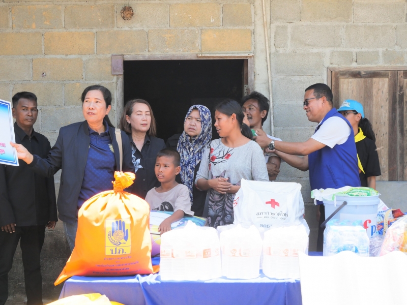 #นายนพดล จีนลิบ นายอำเภอทุ่งหว้า พร้อมด้วย ผู้แทนเหล่ากาชาดจังหวัดสตูล และ ผู้แทนสำนักงานพัฒนาสังคมและความมั่นคงของมนุษย์จังหวัดสตูล ลงพื้นที่เยี่ยมและให้กำลังใจผู้ประสบอัคคีภัย