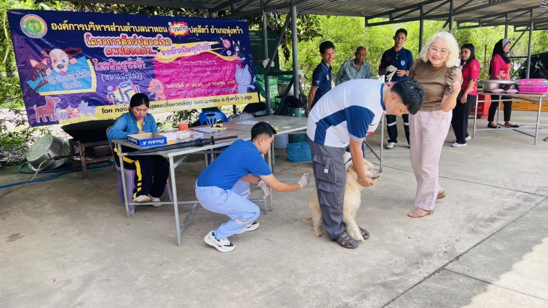 #นายเอกชัย หลงขาว นายกองค์การบริหารส่วนตำบลนาทอน มอบหมายให้ เจ้าหน้าที่กองสาธารณสุขฯ อบต.นาทอน ลงพื้นที่ฉีดวัคซีนโรคพิษสุนัขบ้าให้กับสุนัขเเละเเมว ภายใต้โครงการสัตว์ปลอดโรค คนปลอดภัยจากโรคพิษสุนัขบ้า ฯ ในพื้นที่หมู่ที่ 9 บ้านวังเจริญราษฎร์ ตำบลนาทอน โดยมีประชาชน นำสุนัขและแมว มารับบริการ จำนวน 15 ตัว