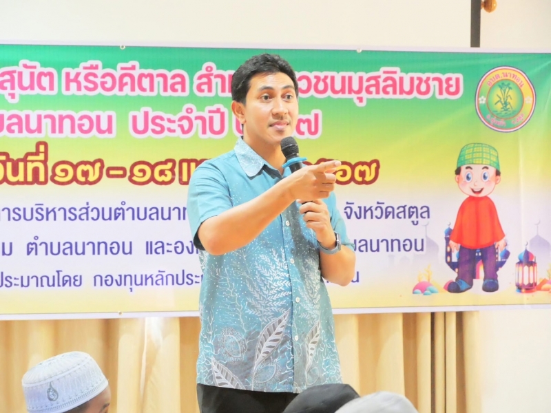 🕌🌙วันที่ 17 เมษายน 2567 องค์การบริหารส่วนตำบลนาทอน และชมรมอิหม่าม ตำบลนาทอน จัดโครงการขลิบหนังหุ้มปลายอวัยวะเพศชาย (เข้าสุนัต) เยาวชนมุสลิมผู้ชายในเขต ตำบลนาทอน ภายใต้การสนับสนุนงบประมาณจาก กองทุน สปสช.อบต.นาทอน โดยมีนายเอกชัยหลงขาว นายกองค์การบริหารส่วนตำบลนาทอน/ประธานคณะกรรมการกองทุนฯ เป็นประธานเปิดกิจกรรม พร้อมด้วยคณะกรรมการกองทุนฯ อิหม่ามและคณะกรรมการมัสยิดฯ คณะผู้บริหาร ประธานสภาฯ สมาชิกสภาฯ เจ้าหน้าที่อบต.นาทอน ผู้ปกครอง เด็กและเยาวชนมุสลิมผู้ชายเข้าร่วมกิจกรรม ณ อาคารศูนย์บริการนักท่องเที่ยวองค์การบริหารส่วนตำบลนาทอน อำเภอทุ่งหว้า จังหวัดสตูล