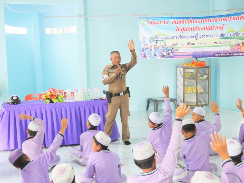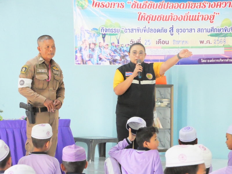 โครงการ "ชันชีขับขี่ปลอดภัย" สร้างความเข้มแข็งให้ชุมชนท้องถิ่นน่าอยู่ กิจกรรม: อาสาขับขี่ปลอดภัยสู่ยุวอาสา สถานศึกษาขับขี่ปลอดภัย