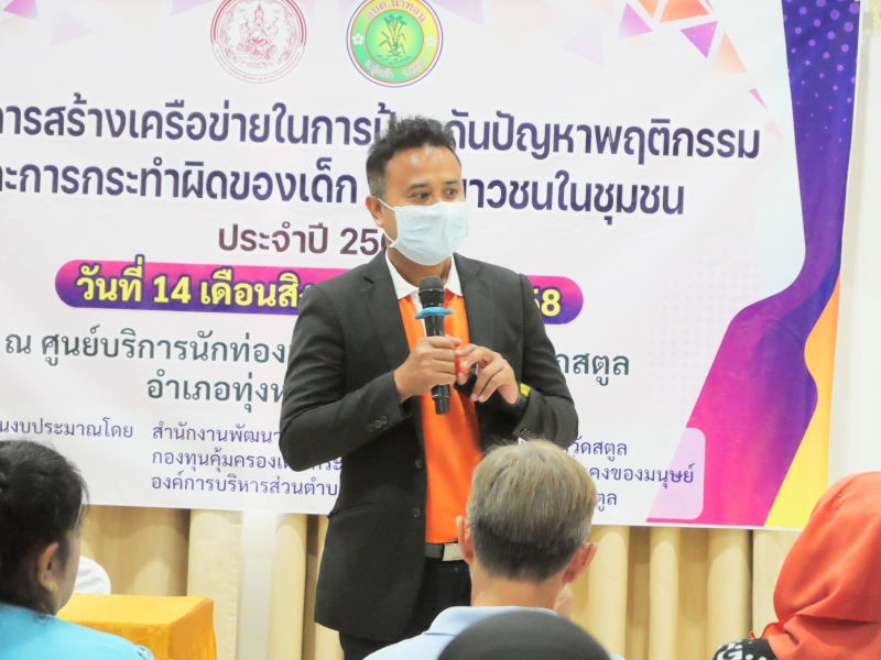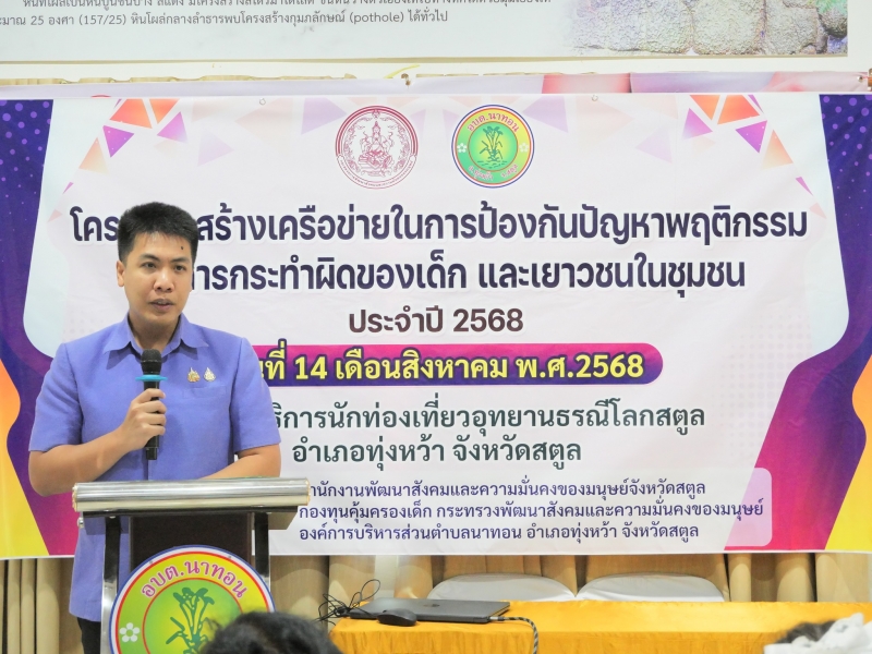 #นายกริชชัย ภู่ฉุน นายอำเภอทุ่งหว้า ให้เกียรติเป็นประธานเปิดโครงการ “สร้างเครือข่ายในการป้องกันปัญหาพฤติกรรมและการกระทำผิดของเด็กและเยาวชนในชุมชน” โดยมีนายเอกชัย หลงขาว นายกองค์การบริหารส่วนตำบลนาทอน กล่าวรายงานวัตถุประสงค์การจัดโครงการฯ