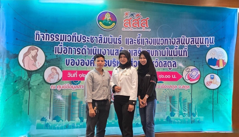 #นายเอกชัย หลงขาว นายกองค์การบริหารส่วนตำบลนาทอน มอบหมายให้ นางสาวสรวีย์ ตาเดอิน รองปลัด อบต.นาทอน พร้อมด้วย นางสาววรกันต์ นันทกูล นักพัฒนาชุมชน และนางสาวนันธิกา ยุลสา เจ้าหน้าที่กองสาธารณสุขฯ อบต.นาทอน เข้าร่วมกิจกรรมเวทีประชาสัมพันธ์และชี้แจงแนวทางสนับสนุนทุนเพื่อการดำเนินงานสร้างเสริมสุขภาพในพื้นที่ ซึ่งจัดโดยองค์การบริหารส่วนจังหวัดสตูล