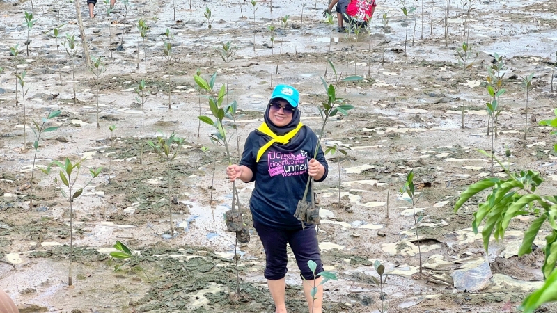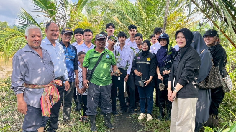 พร้อมด้วย นางสาวสุกัญญา กาเส็มส๊ะ นักจัดการงานทั่วไป และ นางสาวธนาภา รักฤทธิ์ เจ้าหน้าที่ส่งเสริมการท่องเที่ยว อบต.นาทอน ร่วมกิจกรรมปลูกป่าชายเลน กับคณะครูและนักเรียนจาก โรงเรียนศรีทาภิรัตนานุรักษ์ จังหวัดยะลา ภายใต้โครงการส่งเสริมการเรียนรู้เชิงท่องเที่ยว “เปิดโลกทัศน์การเรียนรู้สู่ธรรมชาติ”