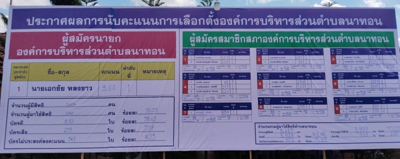 #ขอขอบคุณ คณะกรรมการประจำหน่วยเลือกตั้ง (กปน.) และเจ้าหน้าที่อบต.นาทอน ทุกท่าน ที่ปฏิบัติหน้าที่ตามขั้นตอนด้วยความ โปร่งใส ตรวจสอบได้ จนการดำเนินงานเป็นไปด้วยความเรียบร้อย