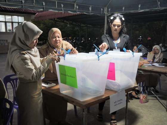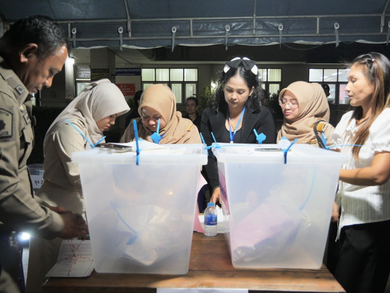 บรรยากาศการรับหีบเลือกตั้ง สมาชิกสภาองค์การบริหารส่วนตำบลนาทอน และนายกองค์การบริหารส่วนตำบลนาทอน