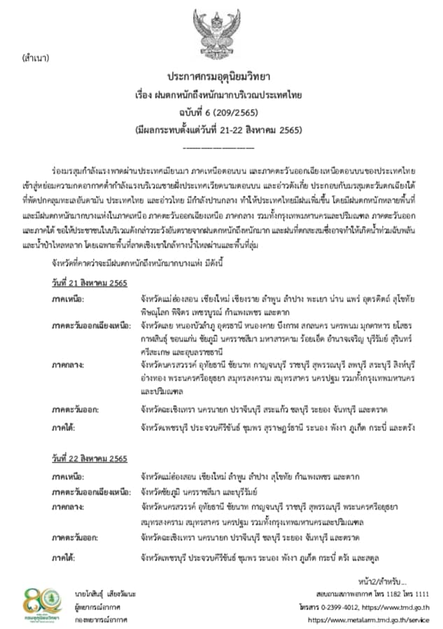 ประกาศกรมอุตุนิยมวิทยา เรื่อง ฝนตกหนักถึงหนักมากบริเวณประเทศไทย (มีผลกระทบในช่วงวันที่ 23 |
